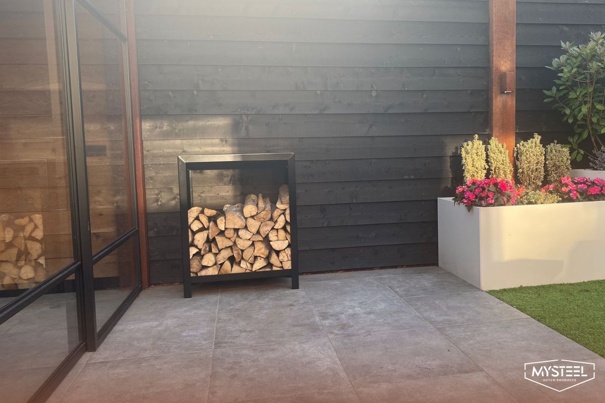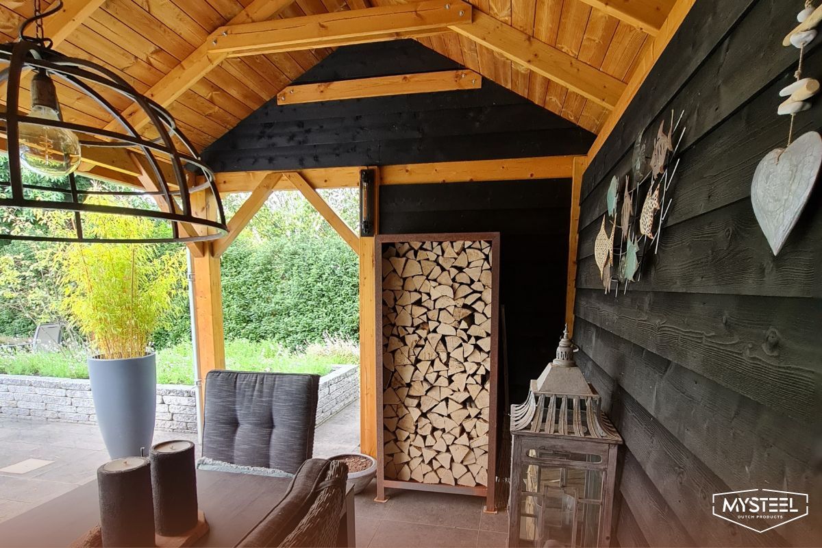 - Se också till att baksidan av förrådet inte är helt stängd. På så sätt kan luften cirkulera bättre. Den cortenstål vedförvaringen och stålvedförvaringen från MySteel är till exempel öppna på baksidan.