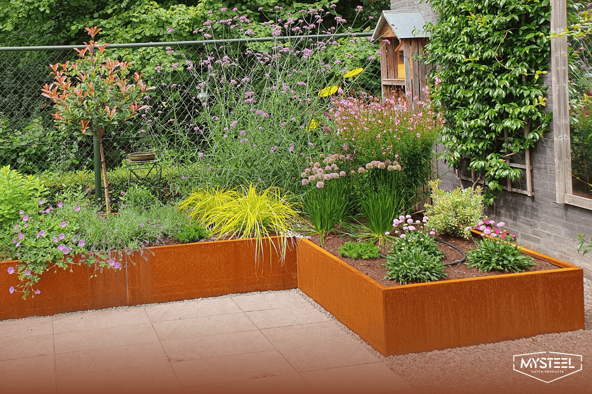 • Bij MySteel gebruiken we cortenstaal onder andere voor plantenbakken, watertafels en borderranden.