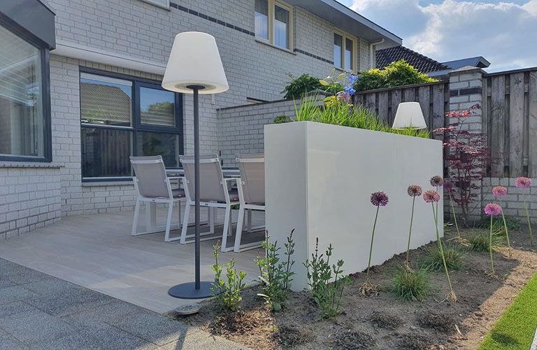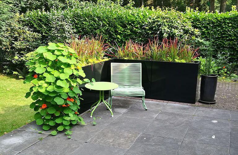 Vill du skapa ett trevligt hörn i trädgården eller på terrassen där du kan njuta av din privacy, sitta vindskyddat och samtidigt njuta av grönska omkring dig? Har du någonsin tänkt på höga stål planteringslådor? Smala, höga planteringslådor som avskiljning tar lite plats, men ger en vacker, grön oas i trädgården. Därför är dessa planteringslådor mycket lämpliga som terrassavskiljning! Flera av våra kunder har också använt en planteringslåda som avskiljning. Vi har gjort en topp 7 med vackra bilder från våra kunder, så låt dig inspireras!