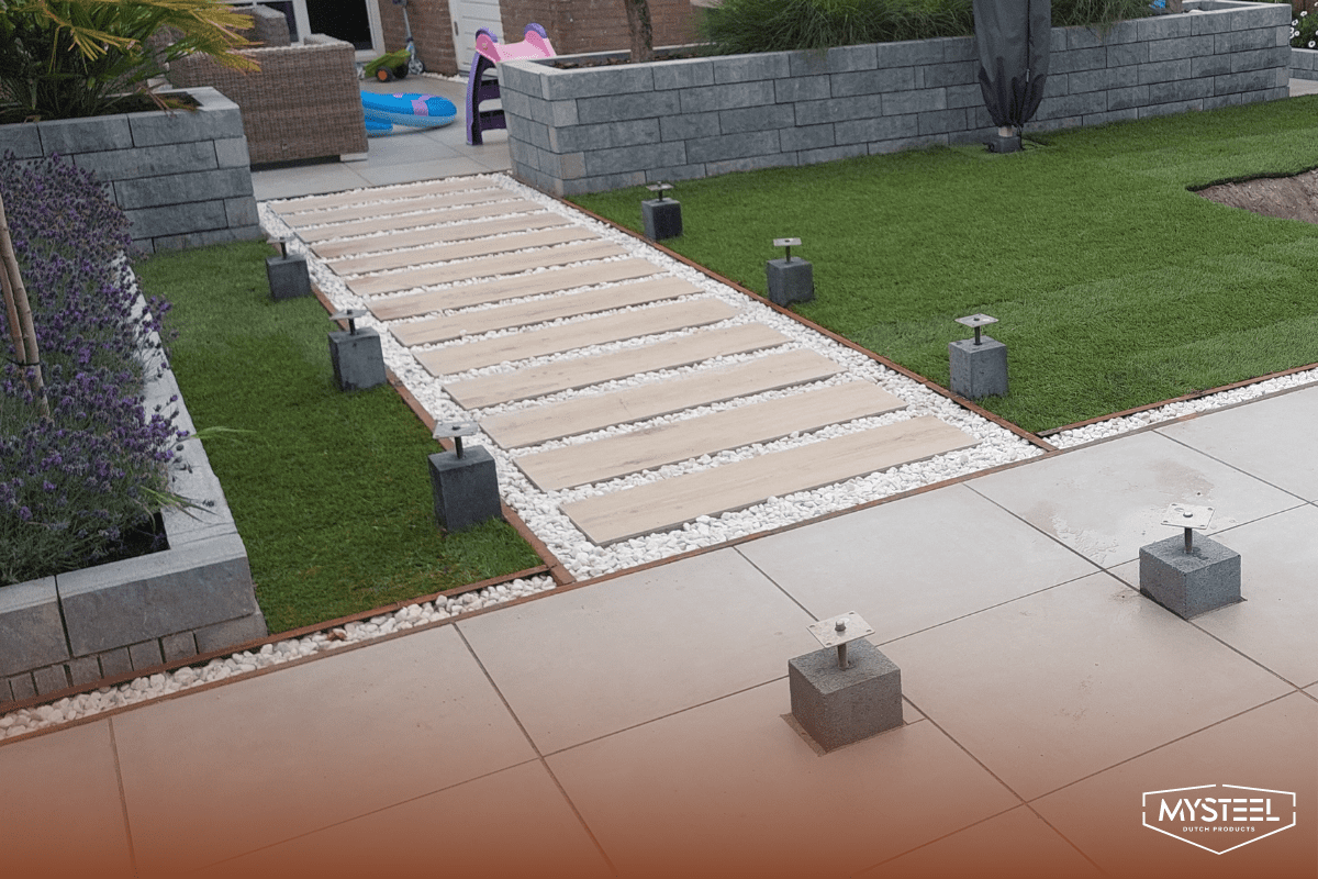 - Kantstenar finns tillgängliga i cortenstål och galvaniserat stål.