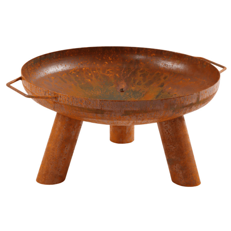 Dessa vackra eldstäder är gjorda av cortenstål. Ett stål som med tiden förändras till en varm orange/brun färg. Cortenstål passar med sin varma utstrålning i alla typer av trädgårdar. Eldstaden i cortenstål är rund i formen och står på tre ben så att marken den står på skyddas väl. Skålen där elden brinner är inte för djup så att du kan njuta maximalt av det fina flammspelet. Det blir timmar av njutning med din familj eller vänner en sval sommarkväll…