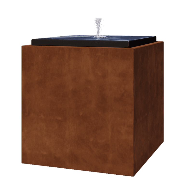 Vattenornamentet levereras komplett med tillhörande pump med sladd. Pumpen inuti behållaren ser till att vattnet pumpas upp. Sedan kommer vattnet att rinna över den inre plattan, för att sedan falla tillbaka ner i behållaren. Du kommer att behöva byta ut vattnet de första månaderna med ett cortenstål vattenornament, tills rostbildningen är komplett. Vid frost bör pumpen stängas av. Som ett extra alternativ kan du välja LED-belysning.