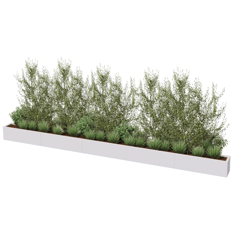 Denna planteringslåda är en modulär stålplanteringslåda som levereras som ett byggsats. Planteringslådan byggs upp av lösa paneler och hörnstycken. Lådorna kan kopplas helt osynligt. Det finns inga fästen i sikte. Genom vårt modulära system är även mycket stora mått möjliga. Genom att använda hörnstycken är unika former möjliga som inte finns som standard någon annanstans. Se manualen för mer information.