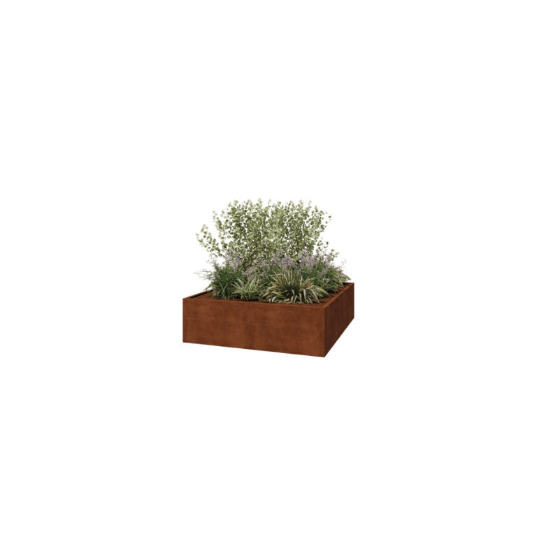 Kruka i cortenstål - Fyrkant - 200 x 200 x 60 cm - Svetsad - Utan bottenplatta