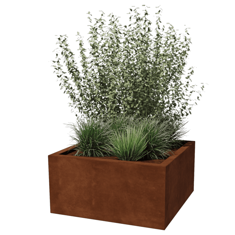 Den cortenstål svetsade planteringslådan är en fyrkantig låda som är helt svetsad och består av ett enda stycke. Detta står i kontrast till våra andra planteringslådor, som är demonterbara. För denna specifika storlek av planteringslåda är en bottenplatta valfri. Denna planteringslåda är estetiskt högkvalitativ och producerad av våra egna hantverkare in-house.