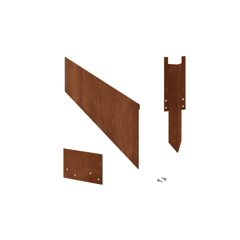 Setet består av tio sektioner av rabattkant, vardera 1,5 meter långa och 23 cm höga, tillverkade av 1,5 mm tjockt cortenstål. Leveransen innehåller också jordspikar, raka kopplingsplattor och monteringsmaterial för att enkelt och stadigt sammanfoga delarna till en stabil konstruktion.