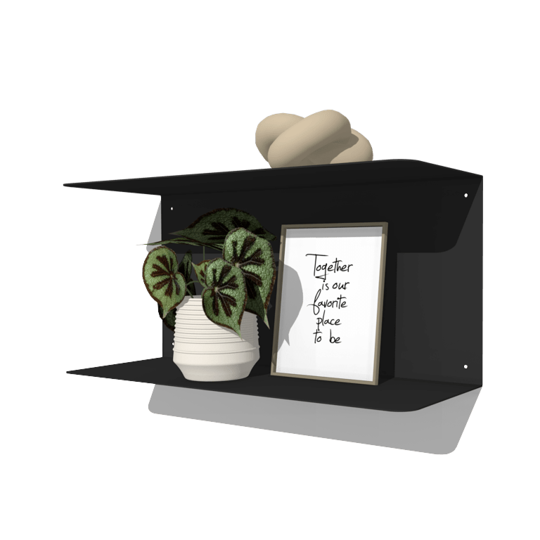 Dessa vägghyllor tillverkas av högkvalitativt sendzimirförzinkat stål och lackeras sedan i olika färger. Pulverlackering är en elektrostatisk process där pulver appliceras på metall med en sprutpistol. Under härdningen i ugnen smälter pulverpartiklarna först av värmen. Därefter blir de klibbiga och slutligen härdar de till en vacker, hållbar beläggning. Tack vare beläggningen är vägghyllan extremt UV-beständig.