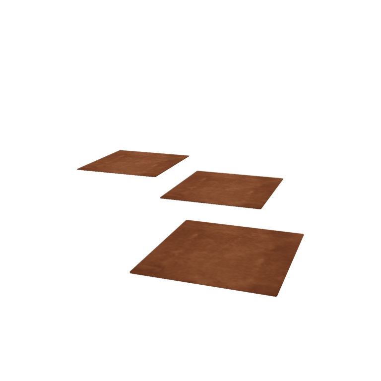 Trampsten i cortenstål - Fyrkant - 40 x 40 cm ger omedelbart karaktär åt din trädgård. Trampstenen mäter 40 x 40 cm och är tillverkad i ett stycke 3 mm cortenstål. Placera den enkelt i jord eller på gräsmattan och skapa gångar i gräs, grus eller mellan växter — gräsklipparen kör obehindrat över den. Rostprocessen startar inom några veckor till månader och ger en varm orangebrun ton; det kan ta 1–2 år innan rosten är helt utvecklad. Beställ nu och njut av hållbar kvalitet och varm atmosfär.