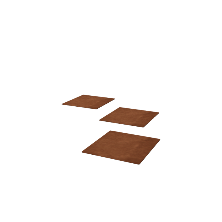 Dessa stegplattor, även kallade stegstenar, är tillverkade av cortenstål som har producerats internt. De kan placeras nästan överallt i trädgården; i grus, på gräsmattan, mellan växterna eller på en annan plats i trädgården. Stegplattorna läggs ner i jorden eller på gräsmattan. Gräsklipparen kan köra över dem utan problem.